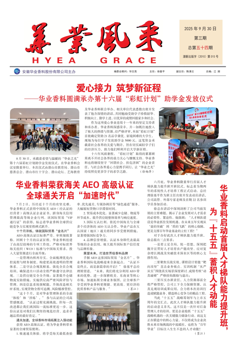 安徽華業(yè)香料股份有限公司自2002年7月成立以來(lái),一直致力于內(nèi)酯系列合成香料的研發(fā)、生產(chǎn)與銷(xiāo)售。公司主要產(chǎn)品為丙位內(nèi)酯系列合成香料和丁位內(nèi)酯系列合成香料,廣泛應(yīng)用于食品飲料、日化、煙草、飼料等行業(yè)和領(lǐng)域。2020年9月,公司在深圳證券交易所創(chuàng)業(yè)板上市,股票代碼300886。