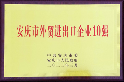 安慶市外貿(mào)進出口企業(yè)10強 2022.3