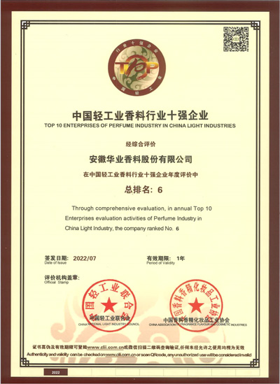 中國輕工業(yè)香料行業(yè)十強企業(yè)-第六名