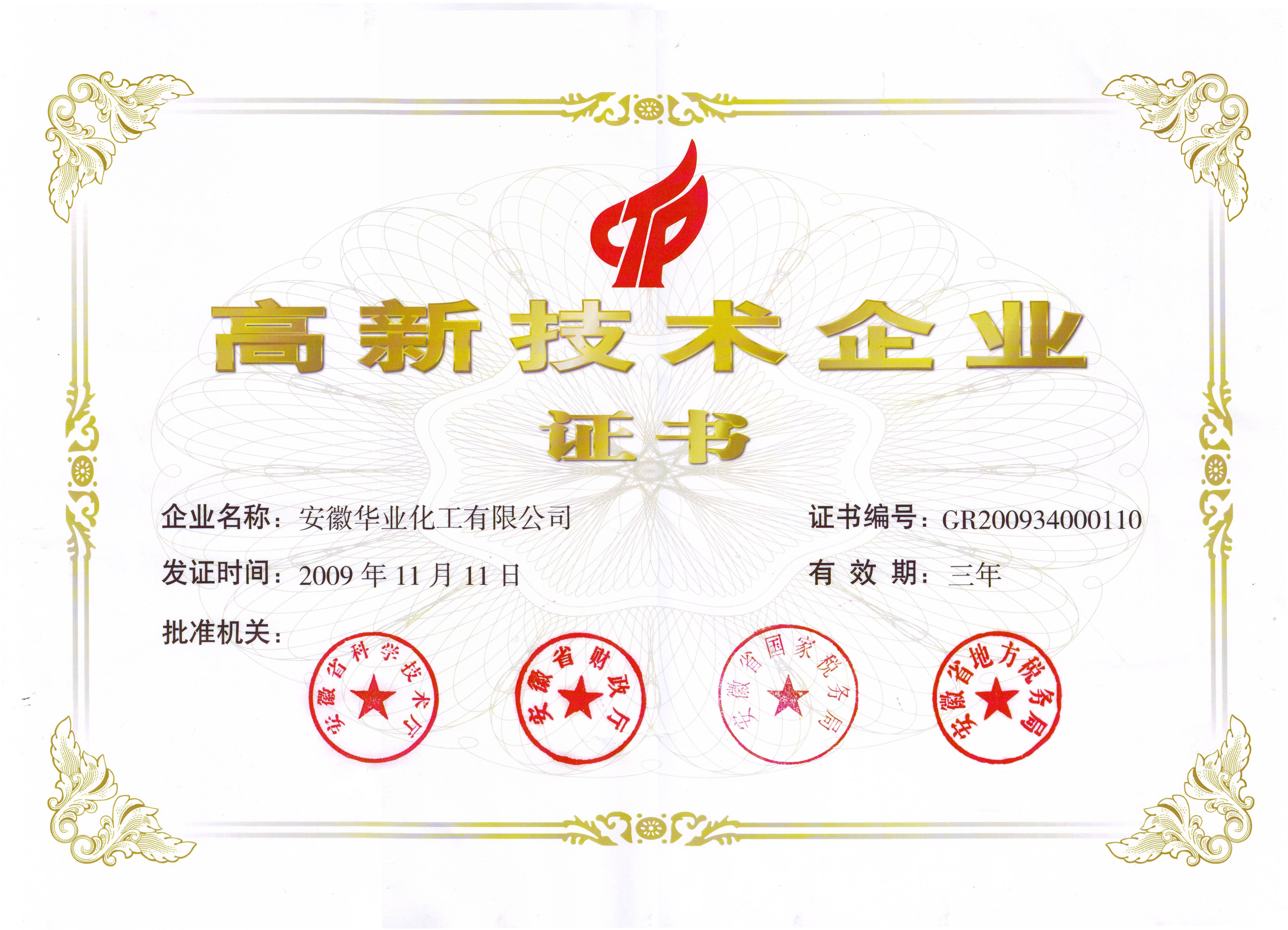 2009年首獲安徽省高新技術(shù)企業(yè)