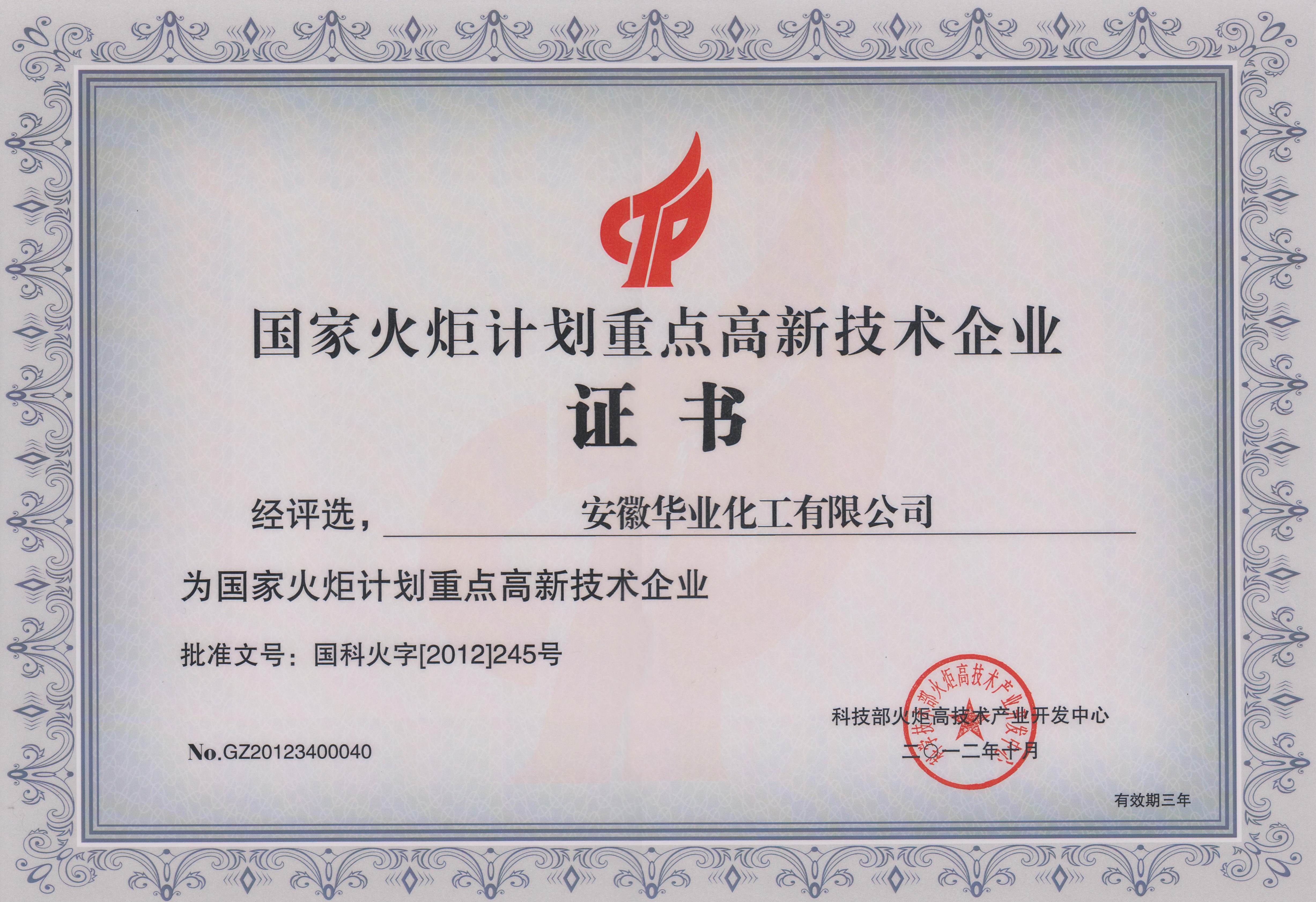 2013年丁位內(nèi)酯項目被認定為國家火炬計劃重點高新技術(shù)企業(yè)