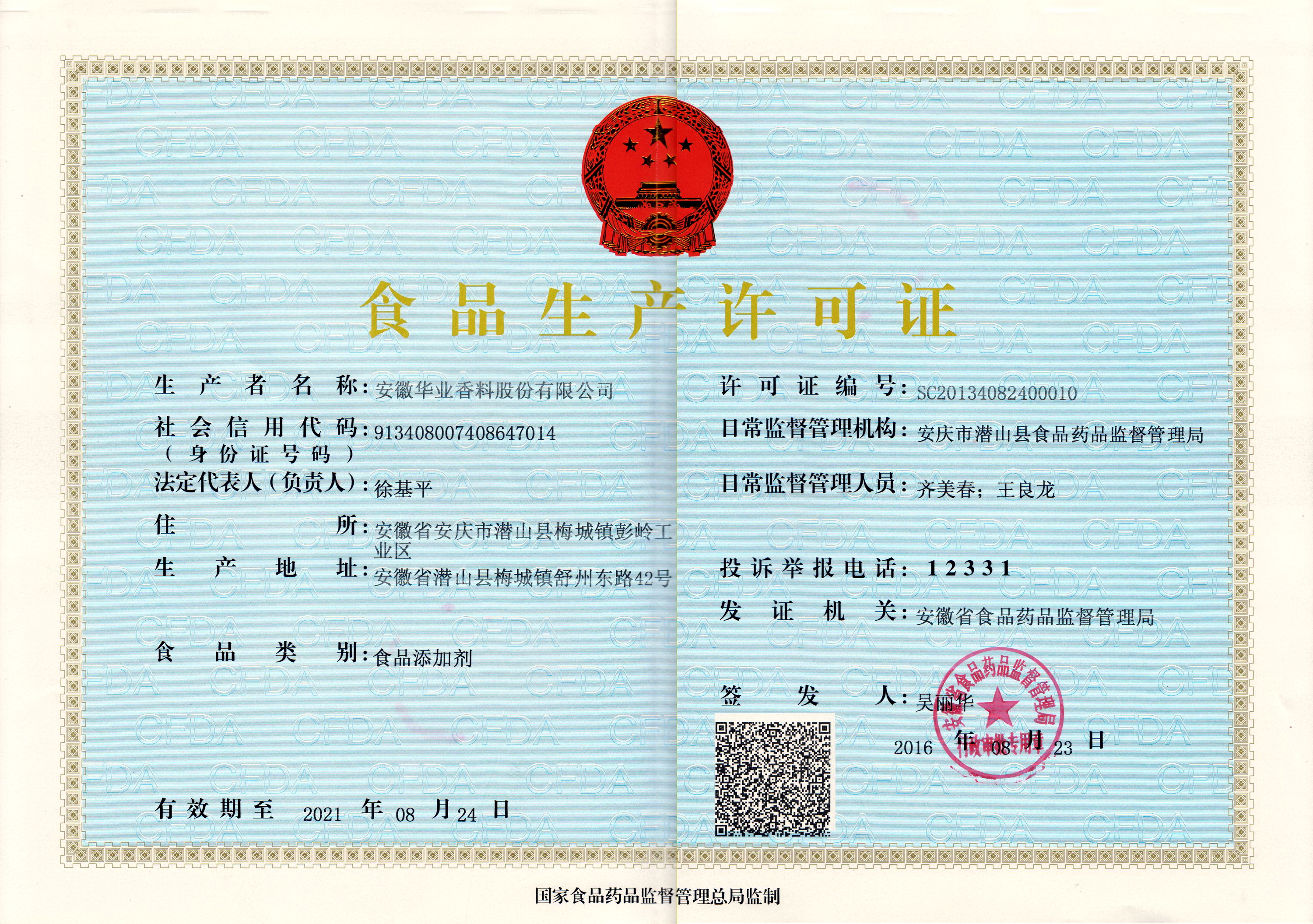 2016年取得《食品生產(chǎn)許可證》