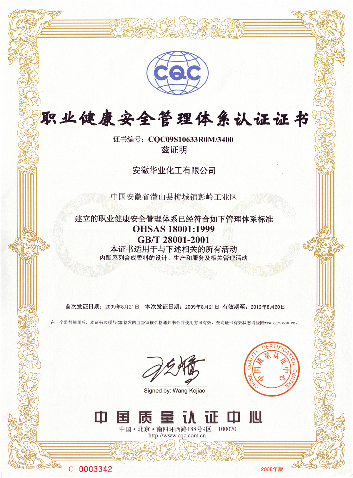 2009年8月,通過職業(yè)健康安全管理體系認證