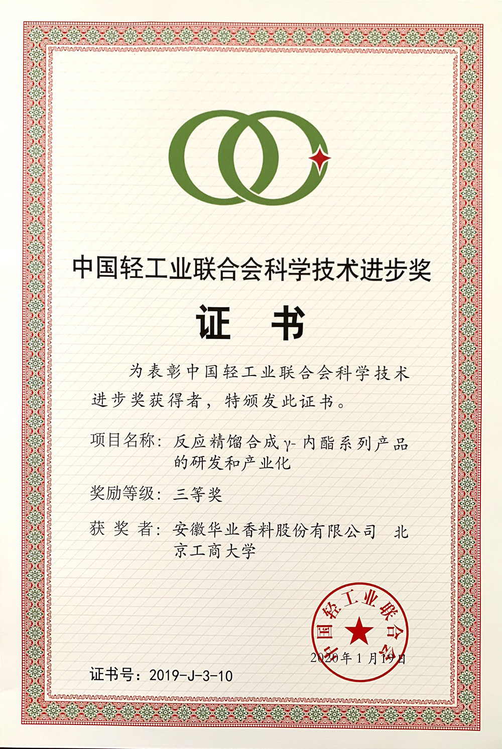 中國輕工業(yè)聯(lián)合會科學(xué)技術(shù)進步獎三等獎