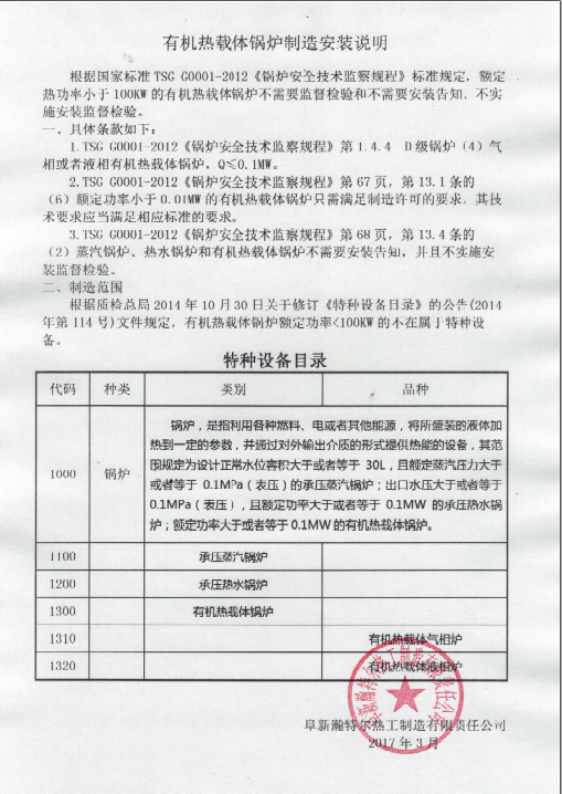 加熱設(shè)備監(jiān)檢≤100KW的說明