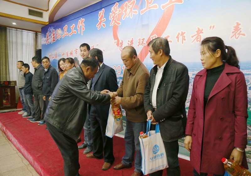 10月26日是“環(huán)衛(wèi)工人節(jié)”,我縣舉行“十佳城市美容師”、“先進(jìn)環(huán)衛(wèi)工作者”表彰大會(huì)暨愛心企業(yè)捐贈(zèng)儀式。副縣長儲(chǔ)誠煒、縣政協(xié)副主席郝忠友出席會(huì)議。公司黨總支書記、副總經(jīng)理汪民富、工會(huì)主席葉見儉和部分黨員,以及各鄉(xiāng)鎮(zhèn)環(huán)衛(wèi)工作分管負(fù)責(zé)人、鄉(xiāng)鎮(zhèn)環(huán)衛(wèi)所負(fù)責(zé)人,城區(qū)居委會(huì)負(fù)責(zé)人,各新聞媒體,縣城市管理行政執(zhí)法局全體職工參加了會(huì)議。