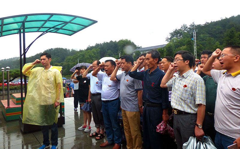 韶山是偉大領(lǐng)袖毛澤東的故鄉(xiāng),是全國著名的革命紀(jì)念地,愛國主義教育基地。24日,經(jīng)過近11個小時的長途跋涉,黨員們終于到達(dá)了向往已久的韶山。第二天早晨,雖然下著大雨,但參觀的人們?nèi)匀唤j(luò)繹不絕。我們懷著崇敬的心情,來到毛主席銅像廣場,在高大巍峨的銅像前,全體黨員虔誠地肅立、默哀、鞠躬、并敬獻(xiàn)了花籃,緬懷一代偉人的豐功偉績。隨后,全體黨員舉起右手,重溫入黨誓詞。