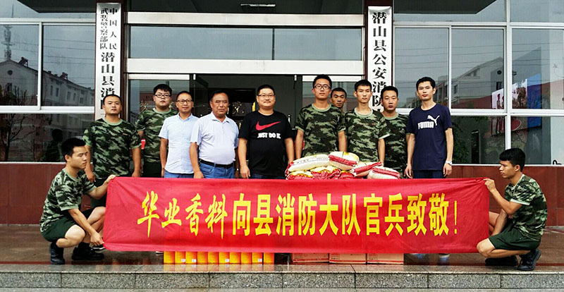 8月1日上午,安徽華業(yè)香料股份有限公司一行來到縣消防大隊,代表公司向駐潛消防官兵表達了崇高敬意和節(jié)日問候,并送上了慰問品,共慶建軍90周年。
