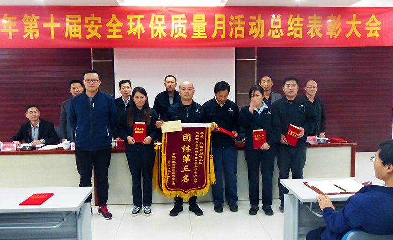 10月15日下午,公司召開第十屆安全環(huán)保質(zhì)量活動(dòng)月總結(jié)表彰大會(huì)。市安監(jiān)局、環(huán)保局、市監(jiān)局、經(jīng)開區(qū)管委會(huì)及市總工會(huì)領(lǐng)導(dǎo)蒞臨會(huì)議,公司總經(jīng)理徐基平、副總經(jīng)理儲(chǔ)艷新、王天義、汪民富及獲獎(jiǎng)代表和生產(chǎn)一線員工共約120余人參加了會(huì)議。會(huì)議對(duì)2018年安全環(huán)保質(zhì)量活動(dòng)月各項(xiàng)活動(dòng)進(jìn)行總結(jié),提出了改進(jìn)目標(biāo),并對(duì)活動(dòng)月期間涌現(xiàn)出的先進(jìn)集體和先進(jìn)個(gè)人進(jìn)行表彰獎(jiǎng)勵(lì)。