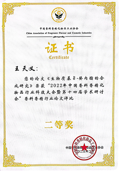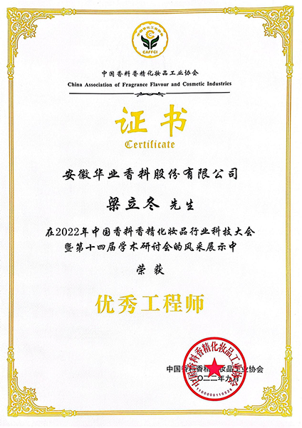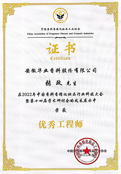 在大會(huì)上,安徽華業(yè)香料股份有限公司王天義、汪洋的論文在香料香精論文評比中榮獲二等獎(jiǎng);梁立冬、張政榮獲優(yōu)秀工程師稱號。