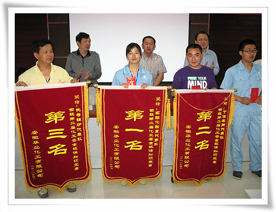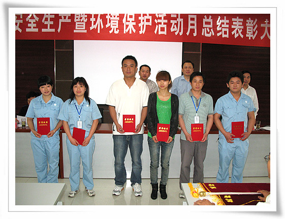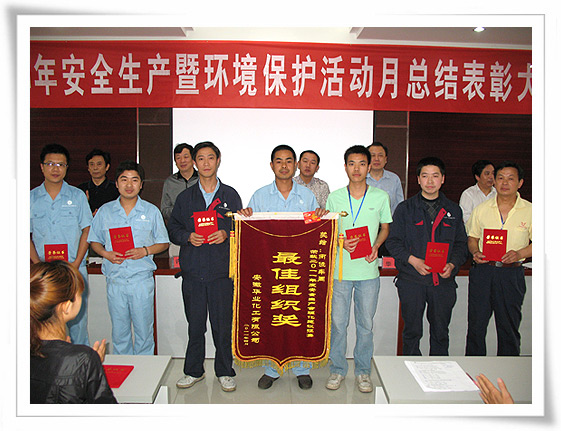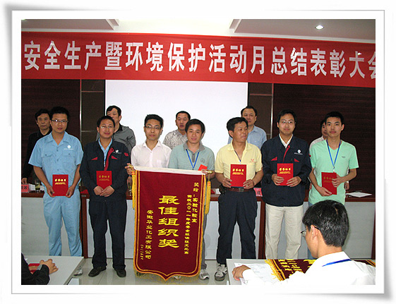 本刊訊(通訊員 一天)4月30日上午,華業(yè)化工2011年度安全生產(chǎn)暨環(huán)境保護(hù)活動(dòng)月總結(jié)表彰大會(huì),在公司四樓會(huì)議室隆重舉行。會(huì)議總結(jié)了2011年安全環(huán)保活動(dòng)月的經(jīng) 驗(yàn)和不足,提出了改進(jìn)的目標(biāo)。同時(shí)對(duì)活動(dòng)月期間涌現(xiàn)出的先進(jìn)集體和先進(jìn)個(gè)人進(jìn)行了表彰??h安監(jiān)局華局長、縣環(huán)保局許局長等領(lǐng)導(dǎo)蒞臨會(huì)議,公司總經(jīng)理徐基 平、總工范一義等公司領(lǐng)導(dǎo)出席會(huì)議。