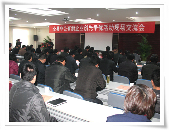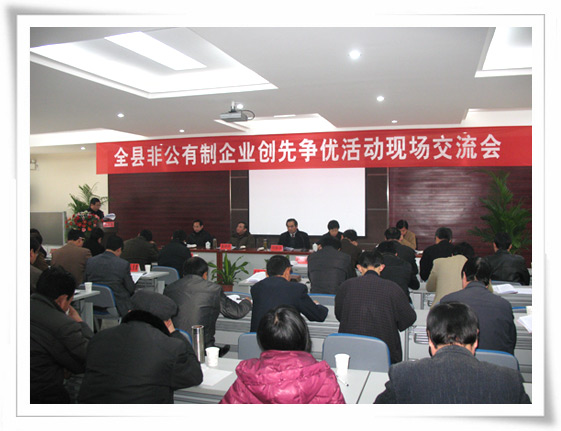 為進(jìn)一步推進(jìn)非公有制企業(yè)創(chuàng)先爭優(yōu)活動深入開展,3月11日,全縣非公企業(yè)創(chuàng)先爭優(yōu)活動現(xiàn)場交流會在華業(yè)化工公司召開。會議由縣委常委、組織部長魯緒橋主 持,縣委副書記何新華出席會議并做重要講話。縣委常委、宣傳部長黃銀枝,開發(fā)區(qū)管委會常務(wù)副主任曹立全,開發(fā)區(qū)黨工委副書記、紀(jì)工委書記王續(xù)旺出席會議。
